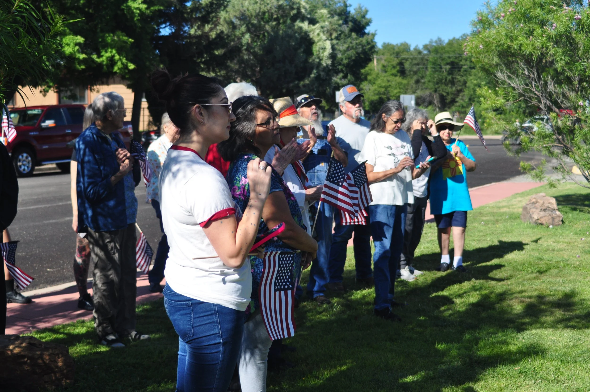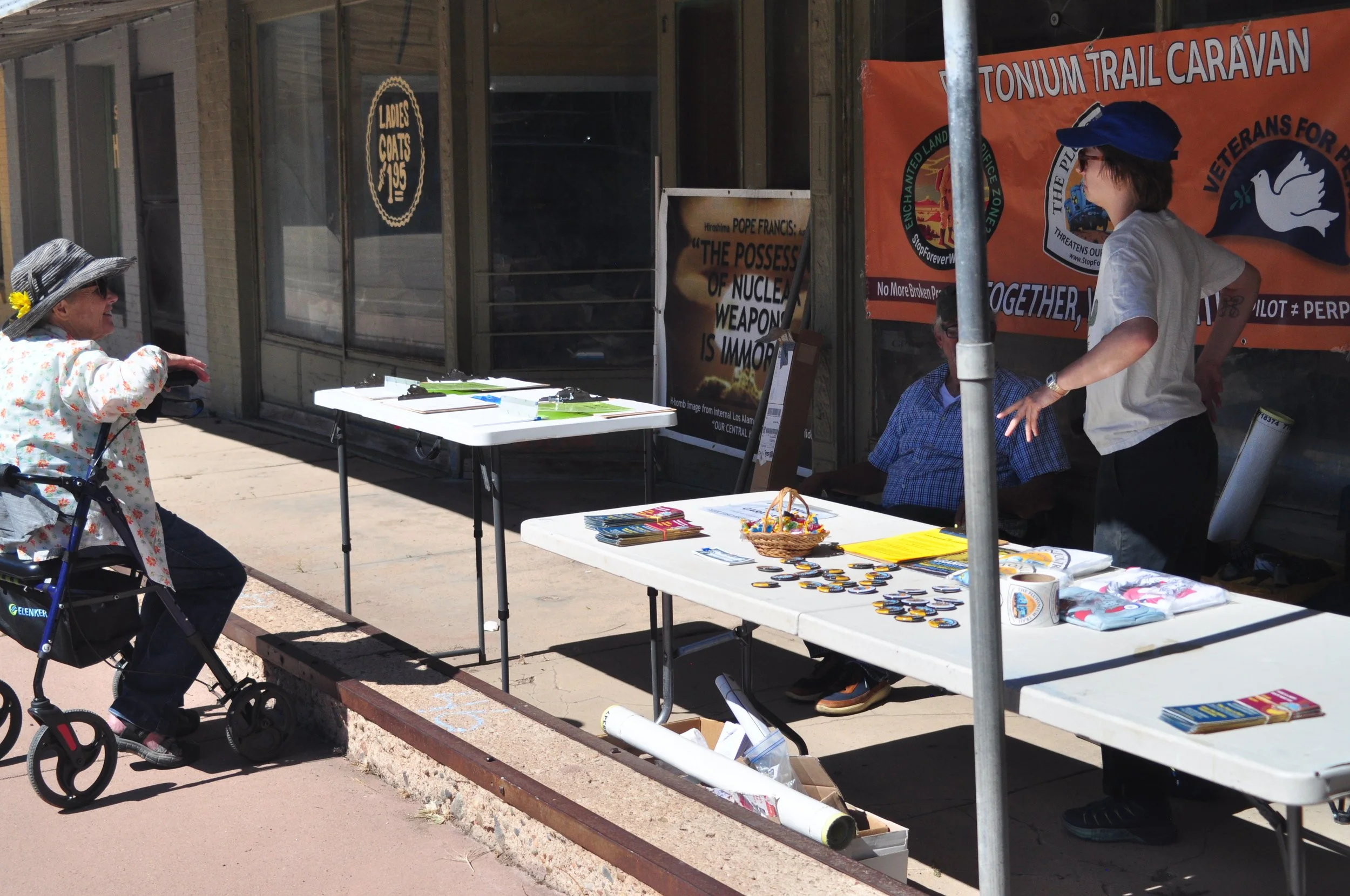 Also a bravo to Chris Harrell for music both at the Farmers’ Market and at Lamy that kept people’s toes tapping as they sang along to familiar songs with new nuclear protest verses.